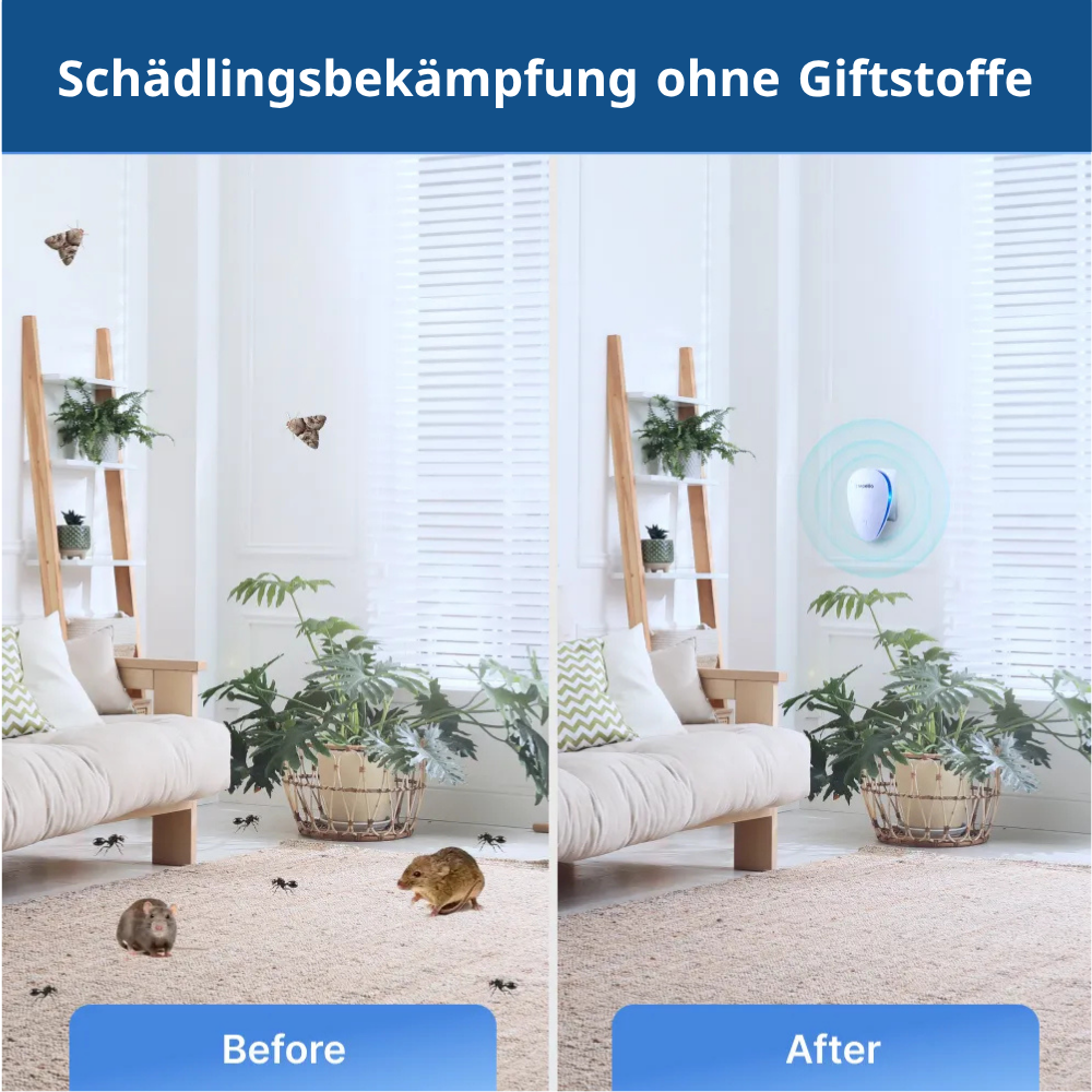 Normale Methoden können Schädlinge nicht dauerhaft vertreiben, da sie sich tief in Wänden, Möbeln und versteckten Ecken einnisten. Dollyo™ antipro wurde speziell entwickelt, um sie mit modernster Multi-Wellen-Technologie gezielt und effektiv zu vertreiben – ganz ohne Chemie, Lärm oder Aufwand.